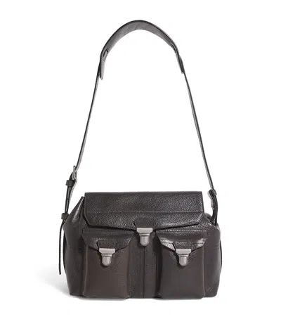 Weekend Gear Leather Crossbody Bag With Pockets In Black