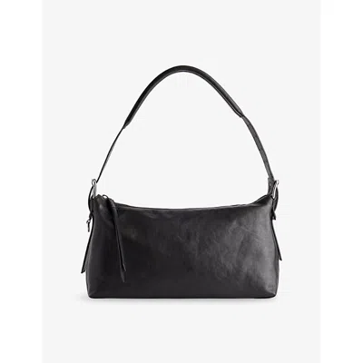 Womens Medium Croissant Leather Shoulder Bag Black