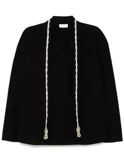 Blouse With Drawstring Neck And Long Sleeves In Black