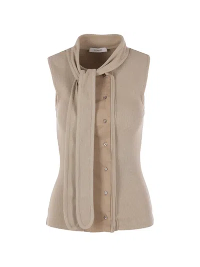 Beige Wool Blend Asymmetric Sleeveless Cardigan In Neutral