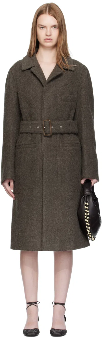 Khaki Belted Tailored Coat In Brown