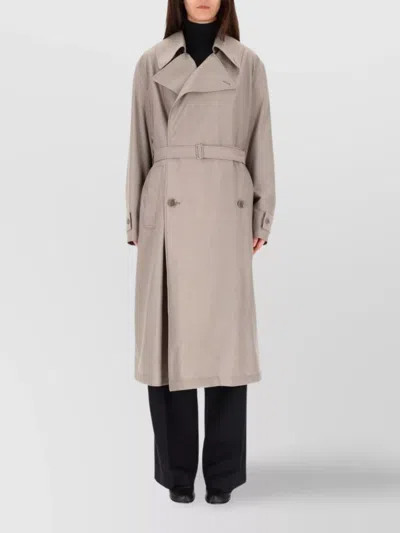 Double-breasted Belted Trench Coat In Gray