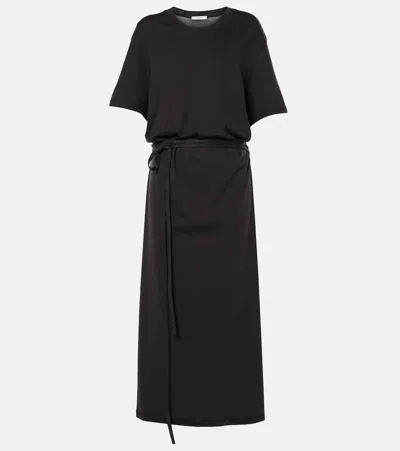Navy Belted Rib T-shirt Midi Dress In Black