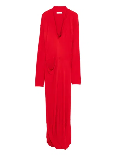 Pocket-detail Cowl-neck Midi Dress In Red
