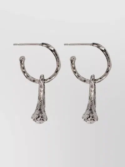 Organic Hoop Drop Earrings Textured Finish In Silver
