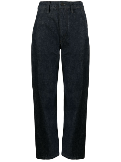 Twisted Belted Mid-rise Barrel-leg Jeans In Blue
