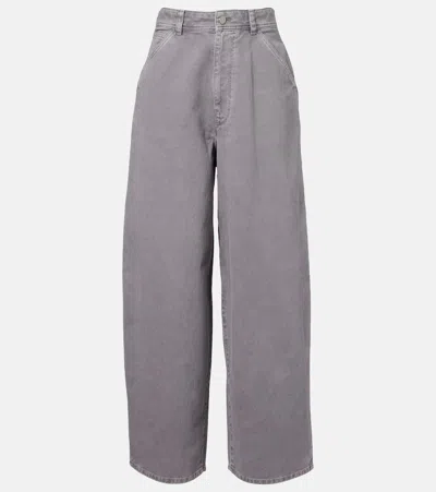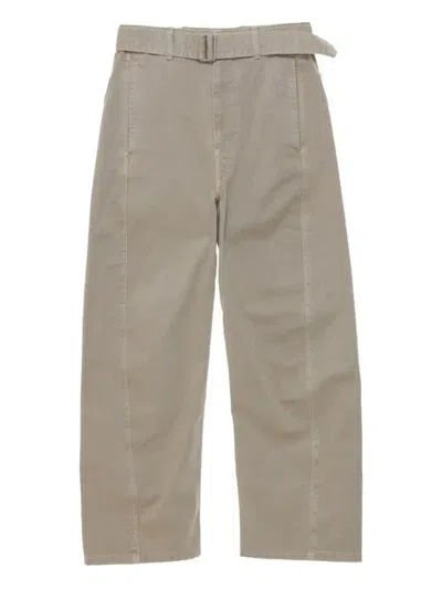 Twisted Belted High-rise Barrel-leg Jeans In Neutral