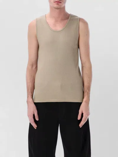 Sleeveless Rib Tank Top Round Neckline In Nude