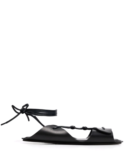 系带开合皮质凉鞋