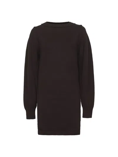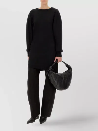 Textured Knit Long Sleeve Sweater With Side Slits In Black