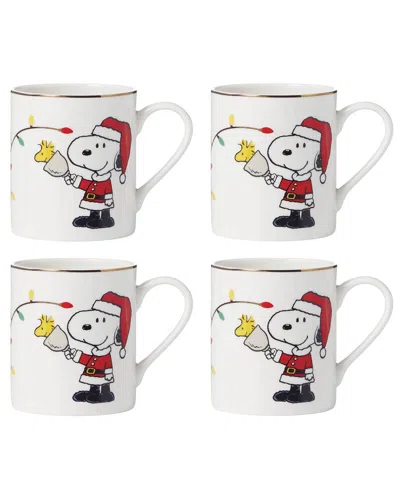 Set Of 4 Snoopy Christmas Mugs In Ivory