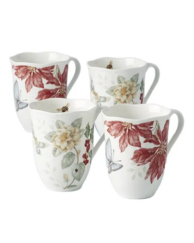 Butterfly Meadow Holiday 4pc Mug Set In White