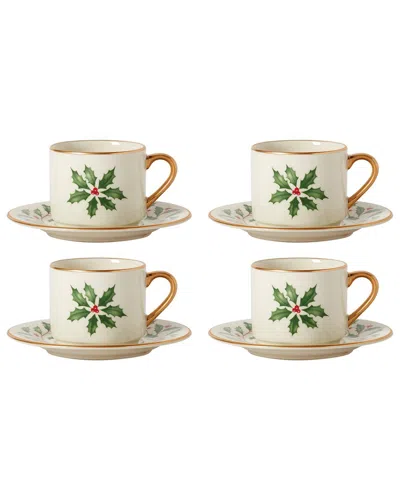 Set Of 4 Holiday Espresso Cup & Saucers In White