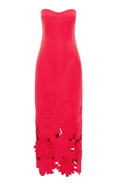 Rayna Strapless Appliqué Bustier Maxi Dress In Red