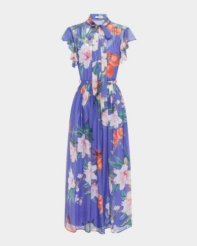 Katrina Ruffled-detail Floral Midi Dress In Blue