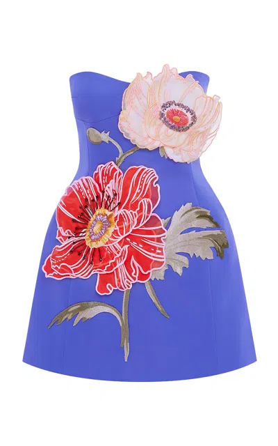 Exclusive Rosario Appliquéd Crepe Bustier Mini Dress In Purple