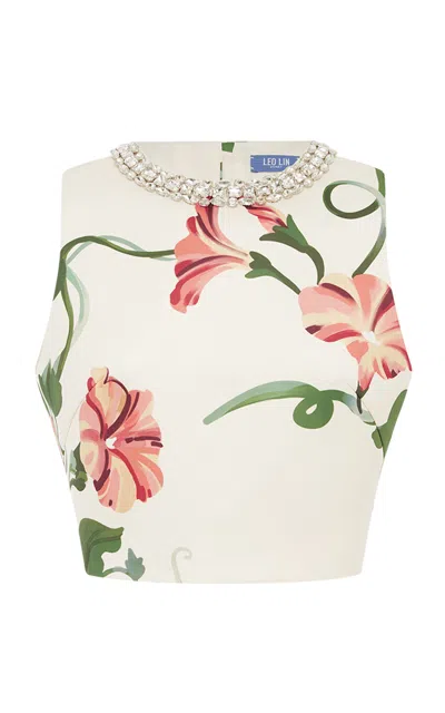 Iris Embellished Printed Top In White