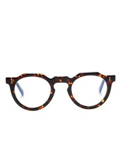 玳瑁纹效果圆框眼镜