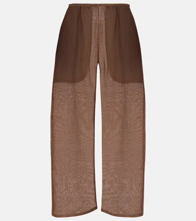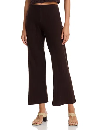 Pointelle Cropped Wide Leg Pants In Brown