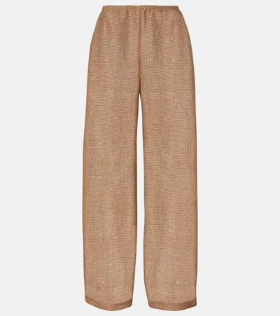 Boxer Pointelle-knit Cotton Wide-leg Pants In Brown