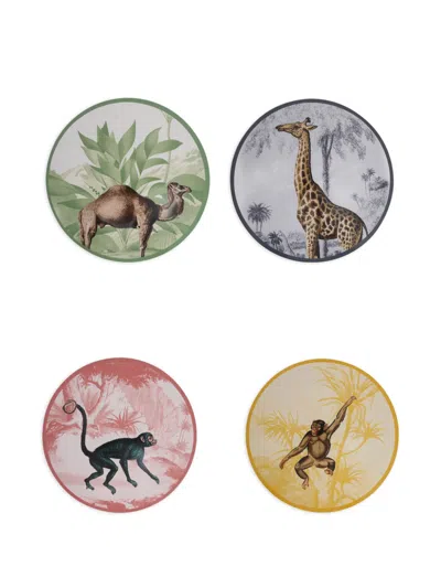 Animal-print Plates (set Of Four) In Neutral