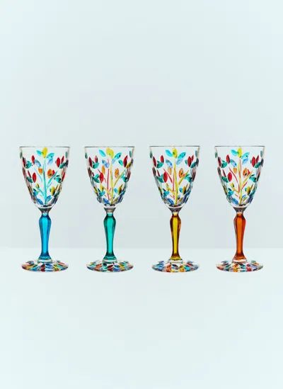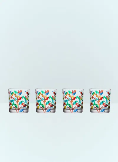 Set Of Four Floral Floral Glasses In Clear