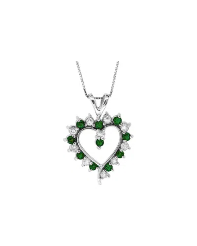 14k 0.88 Ct. Tw. Diamond & Emerald Heart Pendant In Green