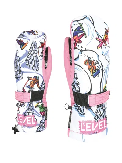 图案印花滑雪手套 In Pink
