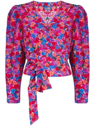 LHD FLORAL PRINT WRAP BLOUSE - 粉色