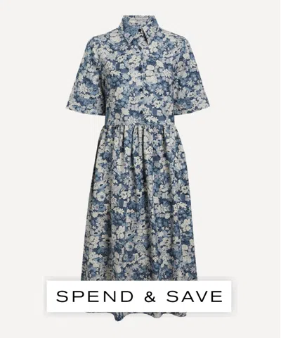 Women's Delft Lagoon Tana Lawn Cotton Gallery Shirt Dress In Blue