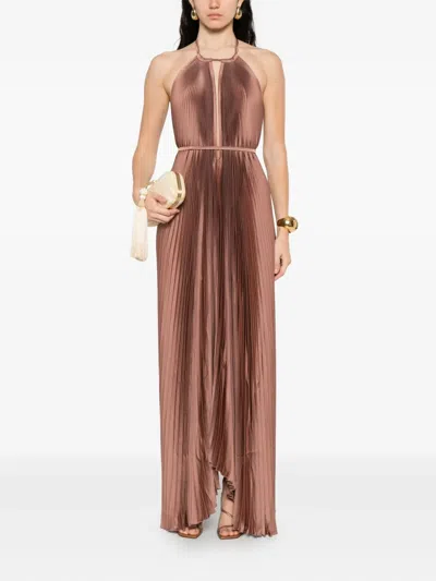 L'idee Eden Pleated Halter Dress In Cosmic Shimer