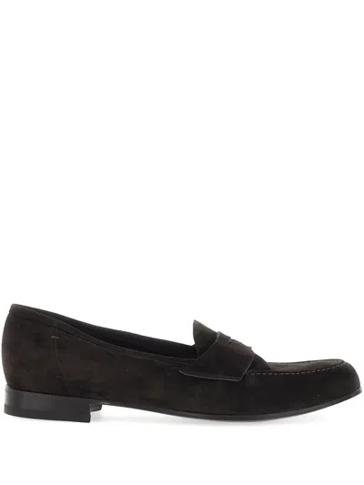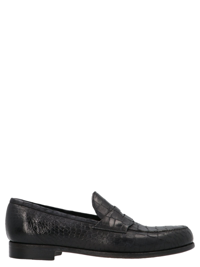 Crocodile-embossed Loafers In Black