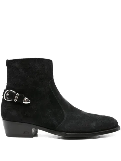 绒面皮扣环细节短靴