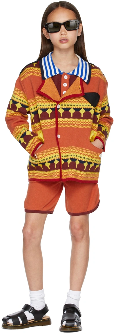 Kids Orange & Yellow Jacquard Cardigan