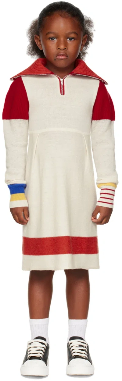Kids Off-white & Red Funnel Neck Dress