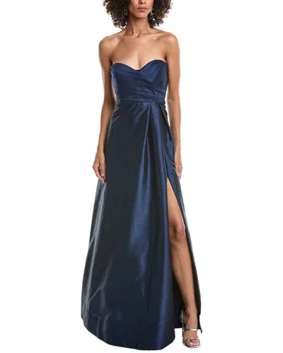 Asra Pleated Satin Gown In Blue