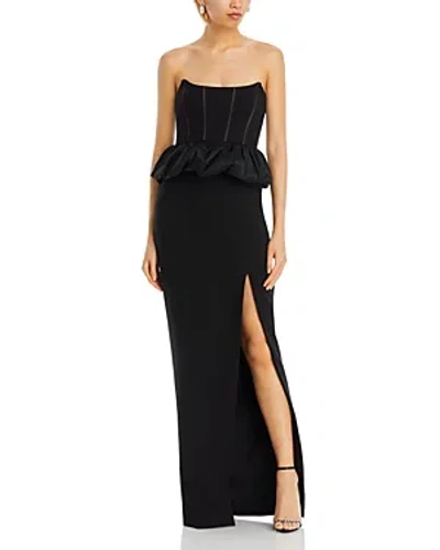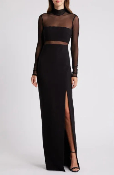 Andie Mixed Media Long Sleeve Column Gown In Black