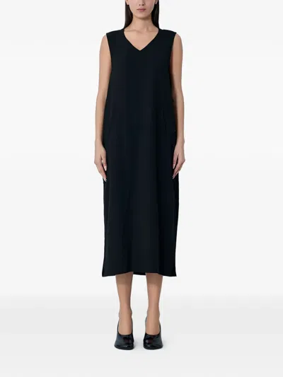 V领针织中长连衣裙