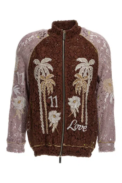 Embroidered-lace Bomber Jacket In Brown/pink
