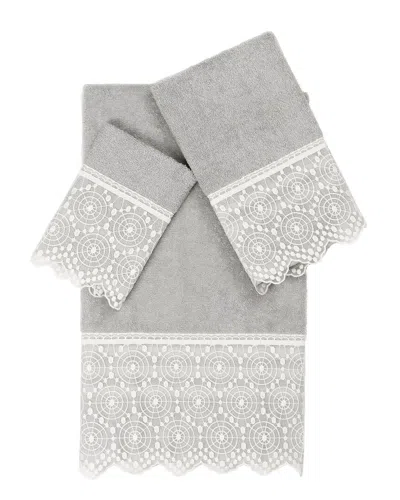 100% Turkish Cotton Arian 3pc Cream Lace Embellished Towel Set In Gray