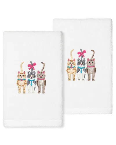 Cats - Embroidered Luxury 100% Turkish Cotton Hand Towels (set Of 2) In White