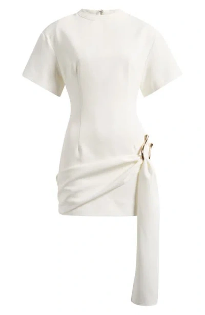 Martini Structured High Neck Drape Waist Metal Hardware Detail Mini Dress In Porcelain