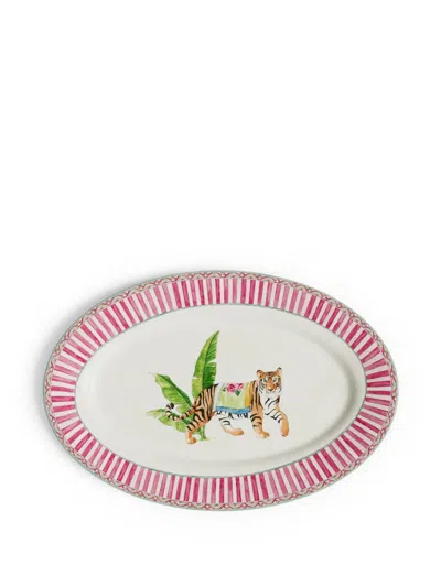 Indian Tiger Plate Set In White