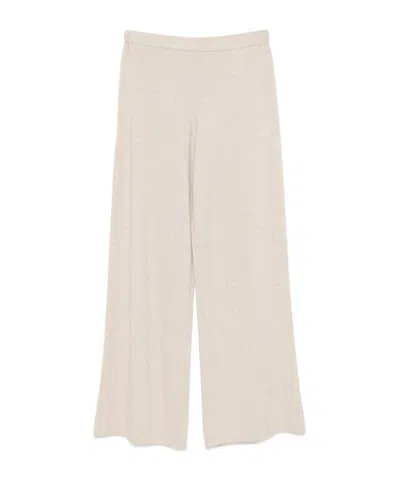 Wide-leg Cashmere Trousers With Ribbed Waistband In Brown