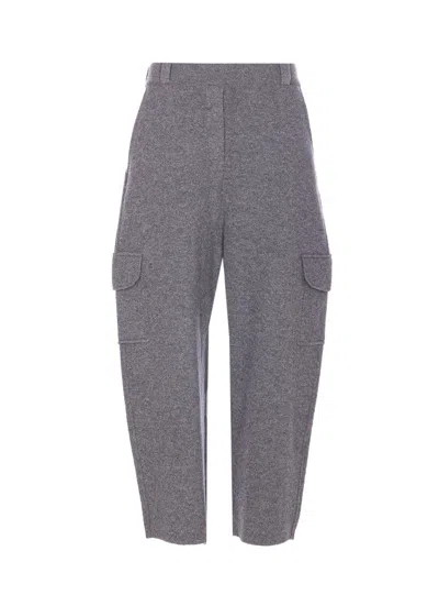 High-rise Cashmere Trousers With Drawstring Waist And Wide-leg Design In Gray