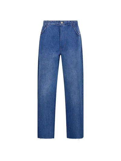 Frayed High-rise Straight-leg Denim Jeans In Blue