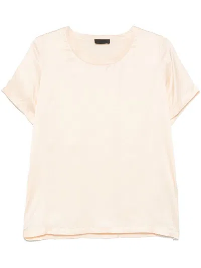 Liu Jo Yellow Crew-neck Blouse With Short Sleeves In Beige
