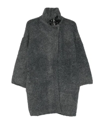 Liu Jo Buckled Collar Knitted Coat In Gray