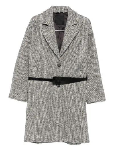 Mid-length Grey Wool-blend Coat With Structured Collar In Gray