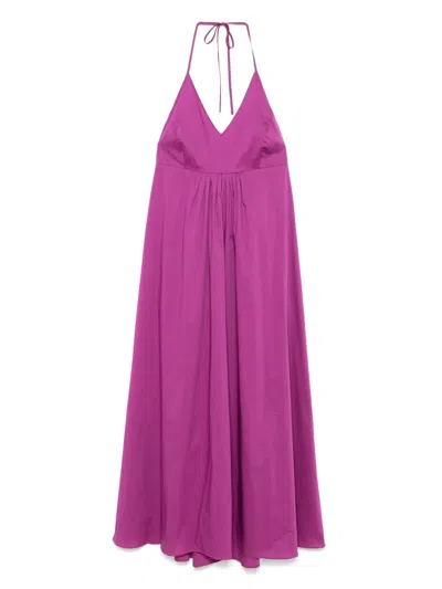 Liu Jo Long Pink Satin Dress With A V-neck